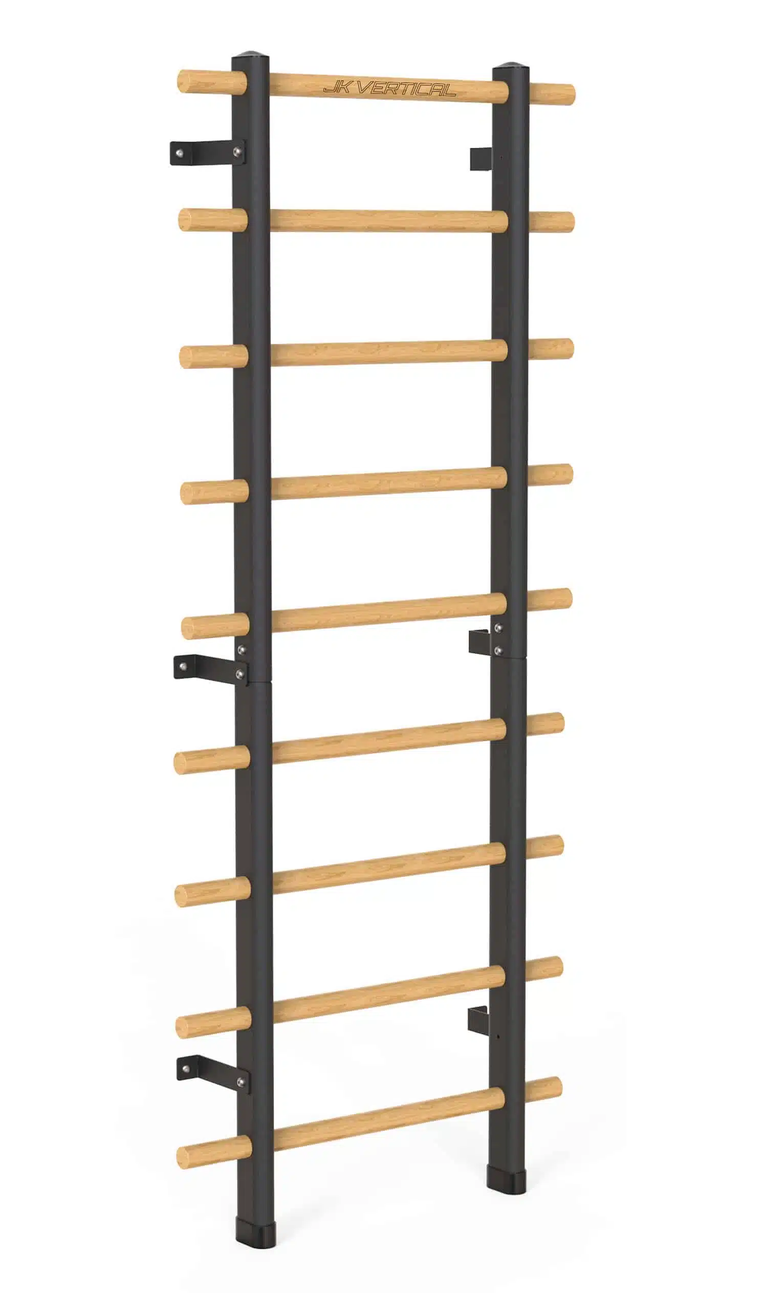 Il telaio in acciaio utilizza tubolari ovali da 50 × 80 mm per garantire massima stabilità a ogni esercizio. I 9 pioli in legno, distanziati di 22 cm, assicurano una presa naturale e confortevole per trazioni, sospensioni, stretching e mobilità.